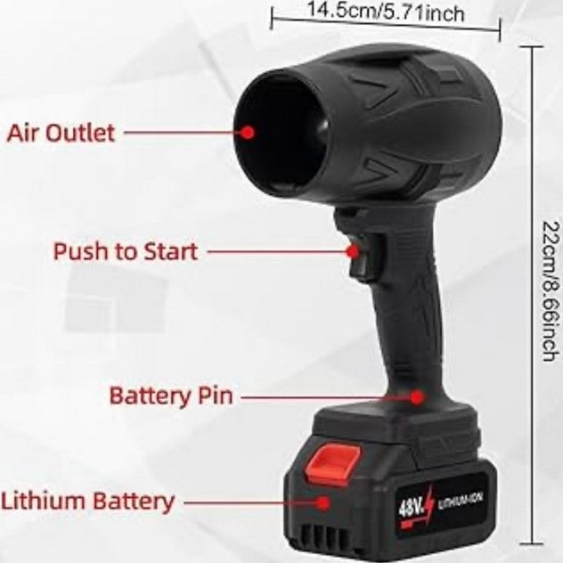 موتور پرقدرت با توان بالا: با باتری ۴۸ وات، این فن قادر است باد متمرکز و قدرتمندی تولید کند که برای زدودن گرد و غبار، خشککردن سریع سطوح، یا خنکسازی تجهیزات بسیار مؤثر است.