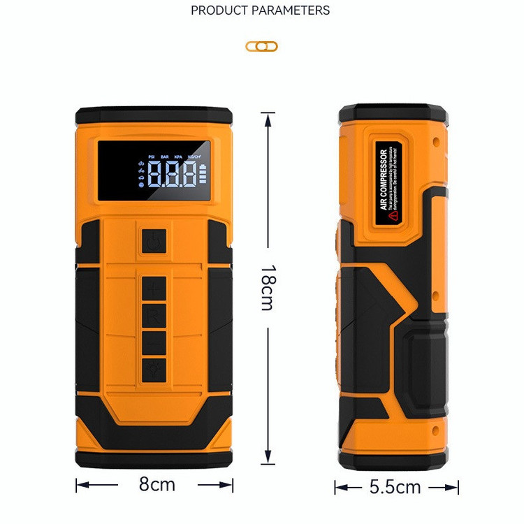 5. جمع و جور و قابل حمل: با طراحی سبک وزن و جمع و جور خود، این دستگاه پمپ هوا یکپارچه منبع تغذیه اضطراری خودرو را می توان به راحتی در صندوق عقب ماشین شما ذخیره کرد یا برای فعالیت در فضای باز با خود برد.