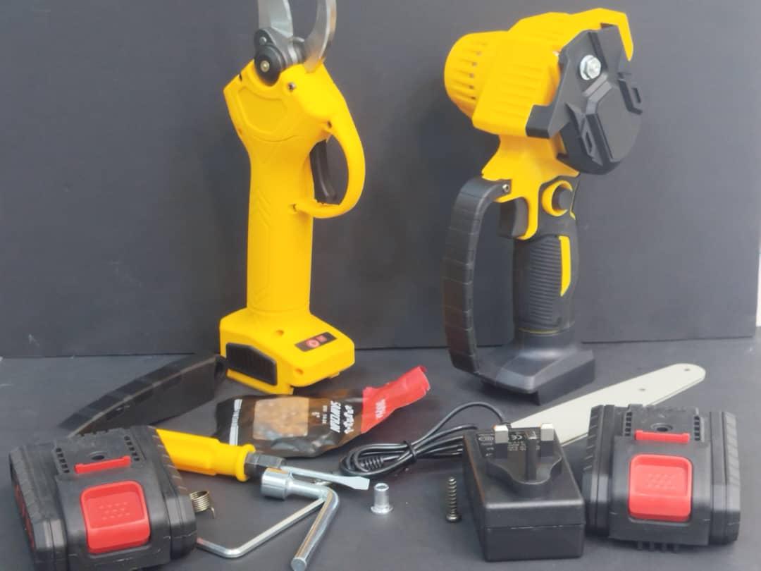 - اره زنجیری بی سیم: مجهز به موتور براشلس با سرعت 25,000 دور در دقیقه، قابلیت برش شاخه های تا 15 سانتی متر، وزن سبک 860 گرم و طراحی مناسب برای کار با یک دست، دارای دو باتری 4000 میلی آمپر قابل تعویض، سیستم ایمنی چندگانه شامل محافظت در برابر جریان و ولتاژ بیش از حد، حرارت و اتصال کوتاه.