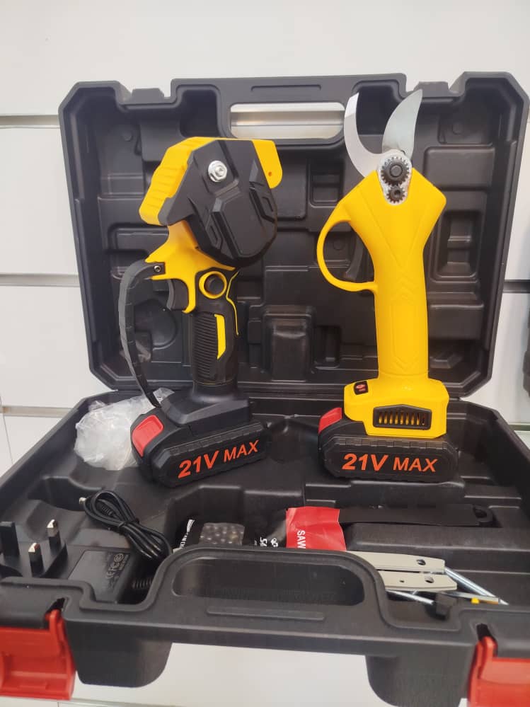 این ست شامل دو ابزار اصلی است: قیچی هرس برقی با راندمان بالا و اره زنجیری شارژی با موتور براشلس قوی و سرعت بالا. قیچی هرس برای برش شاخه های کوچک و هرس دقیق طراحی شده و کارایی آن تا 10 برابر قیچی های دستی افزایش یافته است. اره زنجیری بی سیم نیز با وزن کم و طراحی ارگونومیک، برش شاخه های ضخیم تر تا قطر 15 سانتی متر را با سرعت و دقت بالا انجام می دهد. هر دو ابزار با باتری لیتیومی قدرتمند و قابل تعویض عرضه شده اند که شارژ سریع و کارکرد طولانی را تضمین می کند. این ست همراه با کیف حمل، امکان جابجایی و نگهداری آسان را فراهم می کند.