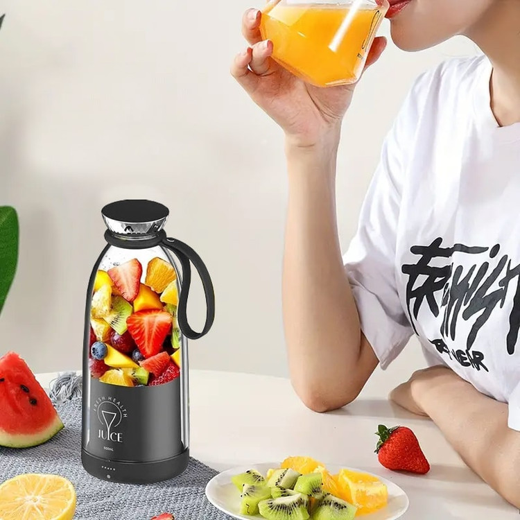مخلوط کن قابل حمل مدل 500 میلی لیتر دستگاهی زیبا و کاربردی است که طراحی آن به شکل یک بطری آب با درپوش و دسته است. کمپانی سازنده این وسیله را در ابعادی معادل 22.5x9.2x9.2 سانتیمتر و وزن 741 گرم ساخته است. همچنین بدنه این مدل بلندر Fresh Juice از جنس پلاستیک مات ABS در رنگ های سفید، صورتی و مشکی به همراه فلز کروم است. در حالی که قسمت شیشه مانند این محصول جنسی از شیشه مقاوم و ضد خش دارد. این بطری همچنین یک بند سیلیکونی مایع دارد که به واسطه نرم و انعطاف پذیر بودن امکان جابجایی و حمل مخلوط کن را به آسانی فراهم می سازد. در ضمن این مدل آبمیوه گیری به راحتی خاموش و روشن می شود. در واقع تنها کافی است که شما شیکر را برعکس کرده و میوه های دلخواه و یخ را داخل مخزن 500 میلی لیتری آن بریزید. در نهایت پس از فشار دادن دکمه روشن و خاموش روی بدنه دستگاه، آب میوه و سبزیجات شما در سریعترین زمان ممکن آماده خواهد شد. دقت داشته باشید که سطح مواد و مایعات ریخته شده در بطری از خط نشان داده شده روی بدنه آن بالاتر نرود. این امر موجب افزایش طول عمر لوازم خانگی و یکدستتر شدن بافت نوشیدنی خواهد شد. قفل امنیتی تعبیه شده در این وسیله نیز امکان بروز هرگونه نشت نوشیدنی را در هنگام جابجایی آن غیرممکن می سازد. بدین ترتیب، شما به راحتی می توانید مخلوط کن و اسموتی ساز Fresh Juice Portable Blender 500ML را درون کیف قرار دهید. در این صورت، در هر مکانی از جمله محل کار و باشگاه می توانید از نوشیدن یک لیوان آب میوه تازه و دلچسب لذت ببرید.